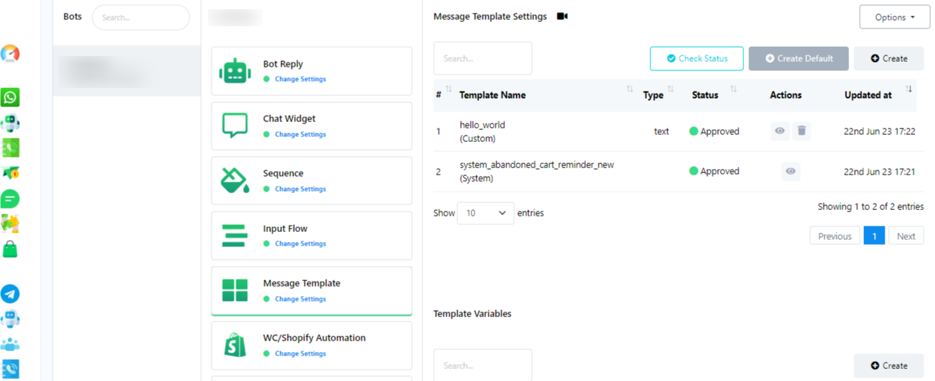 - Go to BizChat Dashboard and navigate to the Bot manager section.